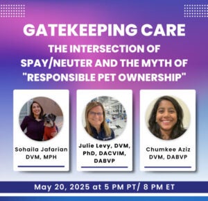 Maddie’s Fund Presents: This webcast presentation shares findings from a large survey of 484 U.S. animal shelter and rescue organizations on adoption event practices and adopter screening procedures. Participants will learn about common processes in adoption decision-making, the role of implicit bias in these processes, and how organizational procedures can affect both the speed and equity of pet adoptions. The session will highlight areas for animal shelter professionals to reflect on their own adoption practices and consider strategies for reducing barriers while supporting successful matches between people and pets.