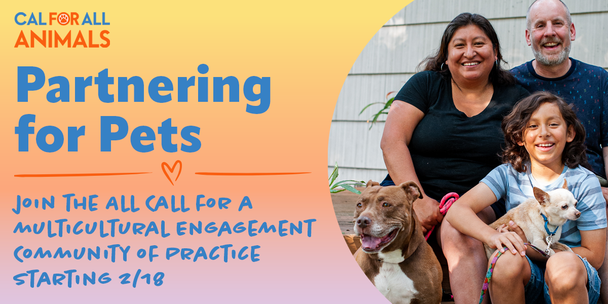 Now, more than ever, it’s crucial to engage all members of our communities. Starting February 18, Partnering for Pets: A Multicultural Community of Practice, is coming to the All Call to strengthen our capacity to do just that.