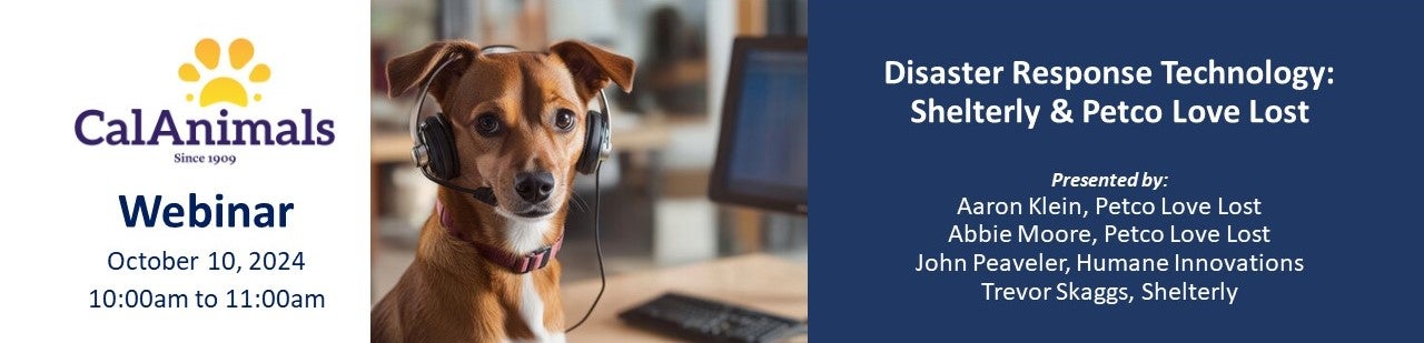 Webinar – 10/10/24 – Disaster Response Technology: Shelterly & Petco Love Lost – CalAnimals