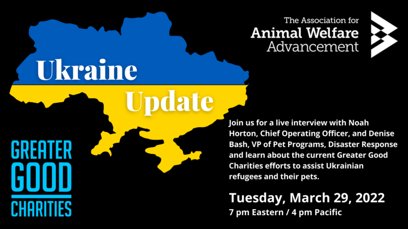 Join a moderated discussion with Greater Good Charities’ Noah Horton, Chief Operating Officer, and Denise Bash, VP of Pet Programs, Disaster Response, about their current efforts to assist Ukrainian refugees and their pets.