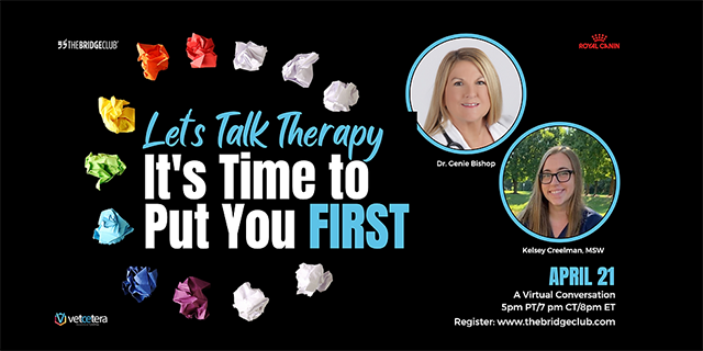 A candid discussion answering all the questions about removing the stigma, what happens in your first appointment and finding the right therapist. Today as more and more stresses impact veterinary professionals from financial concerns, to pet owner treatment, we are in a mental health crisis. So it is time for us to truly dive into solutions to help veterinary professionals. Join The Bridge Club along with our guests Dr. Genie Bishop of Royal Canin and Kelsey Creelman, MSW to remove the stigma and to truly understand what that first therapy appointment looks like.