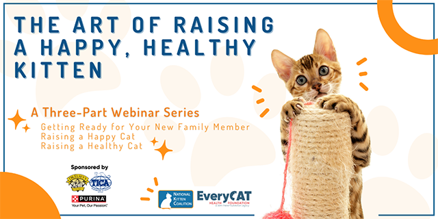 The National Kitten Coalition Presents: The National Kitten Coalition and the EveryCat Health Foundation are hosting a three-part Webinar Series. If you are planning to or have recently added a new kitten to your family, or are looking for information to share with new kitten families in your community, this series will provide crucial information for raising a kitten into a happy, healthy cat.