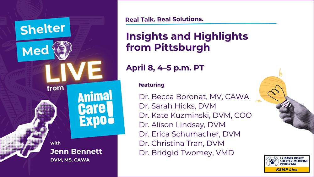 Online Event – 4/8/26 – Shelter Med LIVE from Animal Care Expo – UC Davis KSMP Apr 8 Online Event – 4/8/26 – Shelter Med LIVE from Animal Care Expo – UC Davis KSMP Featured 4:00 PM – 5:00 PM Free